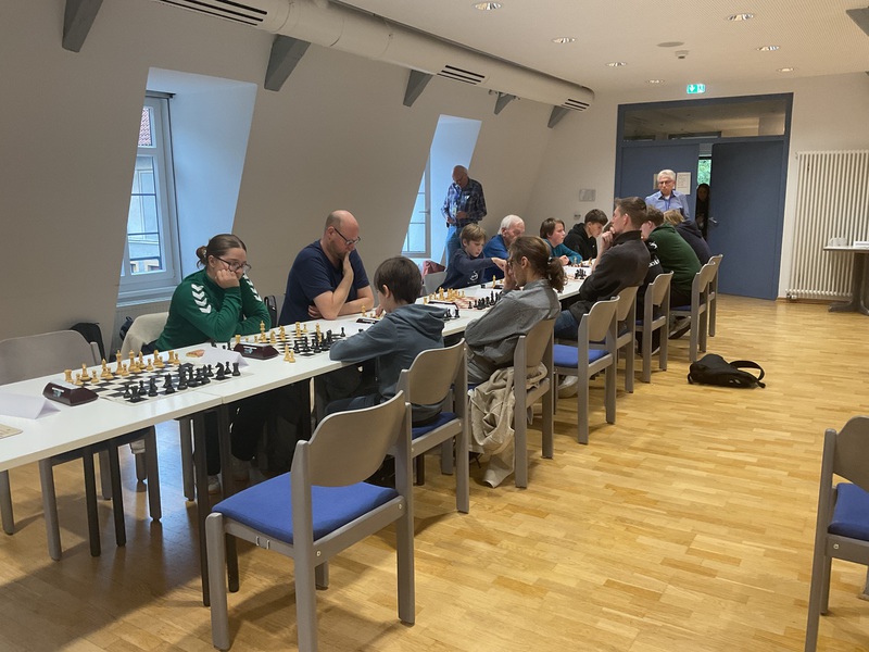 Bedenkzeit 70 Minuten für die gesamte Partie plus 30 Sekunden pro Zug von Anfang an, zu spielen. Die Beteiligung war erfreulich gut, hatten doch viele, die eigentlich eingeplant waren, mehr oder