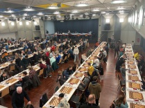 Der Spieltag begann mit einem Schrecken. Der Turniersaal sah nicht so aus, als wenn wenige Stunden später hier ein großes Turnier stattfinden könnte. Baugerüst, Handwerker und die Spuren der handwerklichen Arbeit waren deutlich. Dank des Einsatzes von Kirsten Bünte und Thomas Bergmann konnten aber bis zum Abend sehr gute Spielbedingungen hergestellt werden.