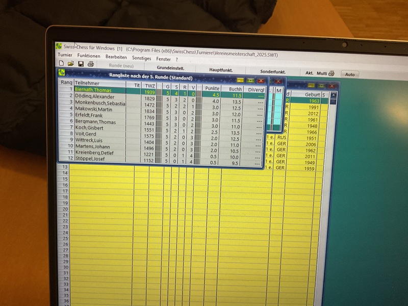 Mit der fünften Runde ging am Freitag die Vereinsmeisterschaft 2025 zu Ende. Noch zwei Spieler konnten sich Hoffnungen auf den Titel machen. Thomas Biernath und Alexander