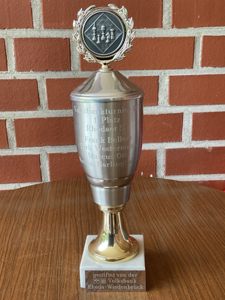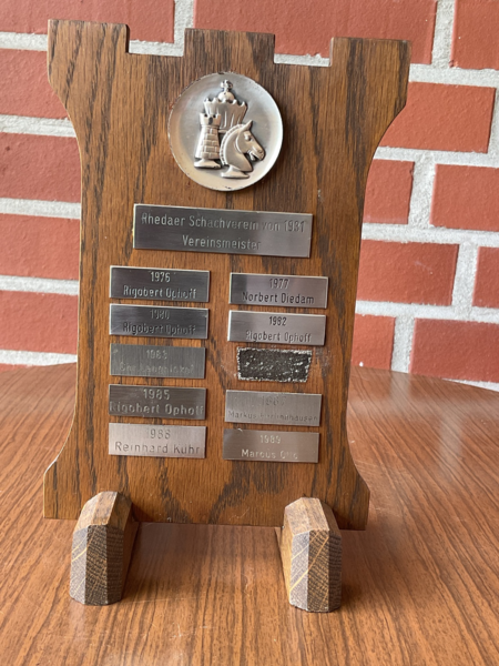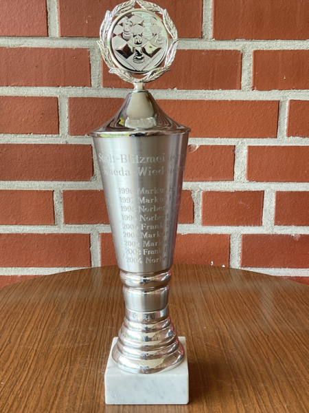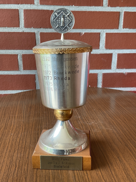 Hier sind jetzt die Pokale, zumindest von vorn, abgebildet. Bei den Vereins- und Stadtmeisterpokalen sind die Rhedaer Titelträger auf den weiteren Seiten hier in der Hall of Fame verzeichnet, so dass man dort gut nachsehen kann. Einige Pokale müssen auch noch mal geputzt werden - aber bei einem Alter zwischen 50 und 70 Jahren ist das nicht erstaunlich.