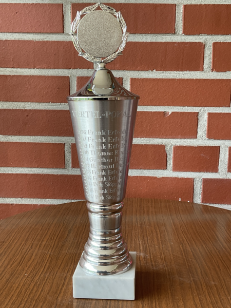 Seitdem wir uns "legendäres" Spiellokal in der Gaststätte Neuhaus verlassen mussten, waren von uns gewonnene Pokale in Umzugskisten verbannt und staubten unbeachtet vor sich hin. Das soll sich ändern, haben wir uns gedacht und Ihnen hier zumindest schon einmal eine digitale Plattform gegeben.